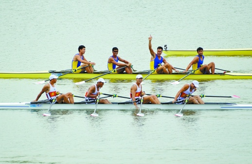 在男子轻量级四人单桨决赛中,卫冕冠军李树文/贾明亮/梁明阳/关洪峰仅以0.34秒的微弱差距不敌山东队,屈居亚军。湖南选手张志瑜与三位辽宁队选手组成的艇以6分01秒92获得铜牌。