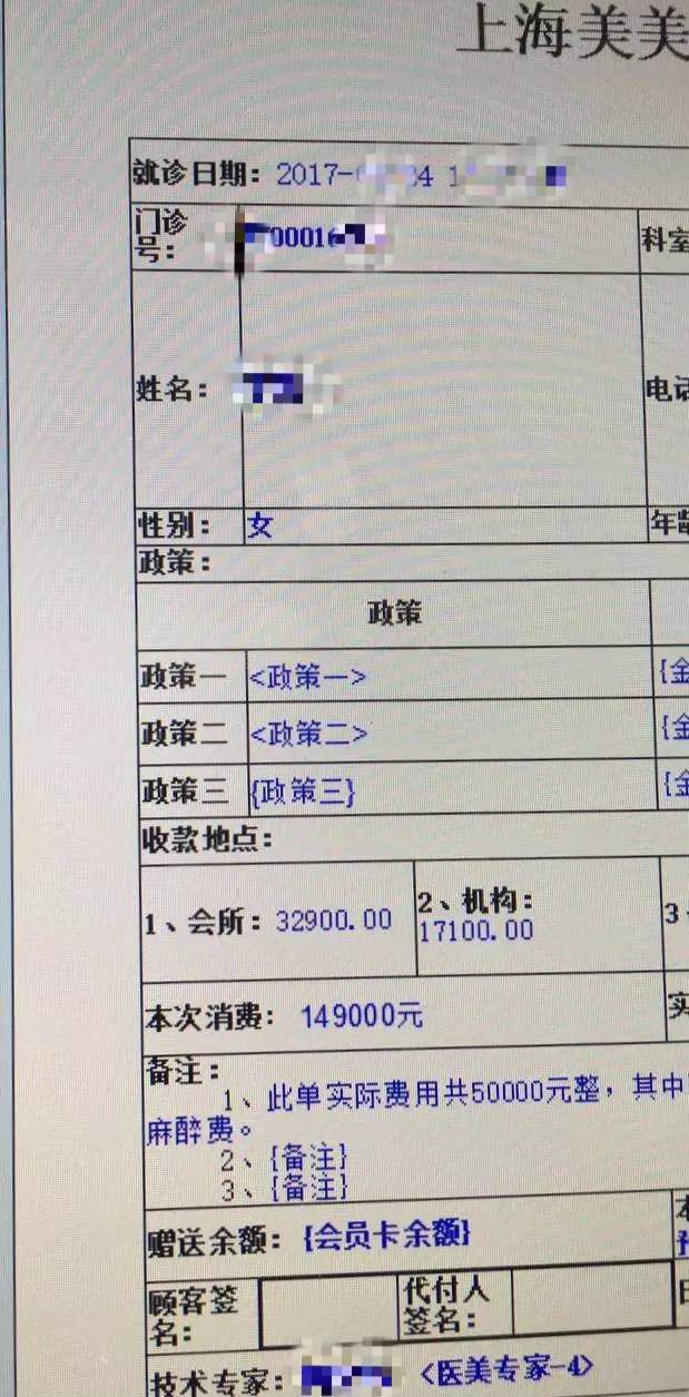 149000元的医疗美容费用,实际费用只要5万。这是贷款到手后,有关机构的“分成”。