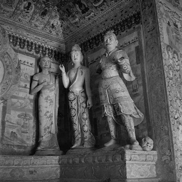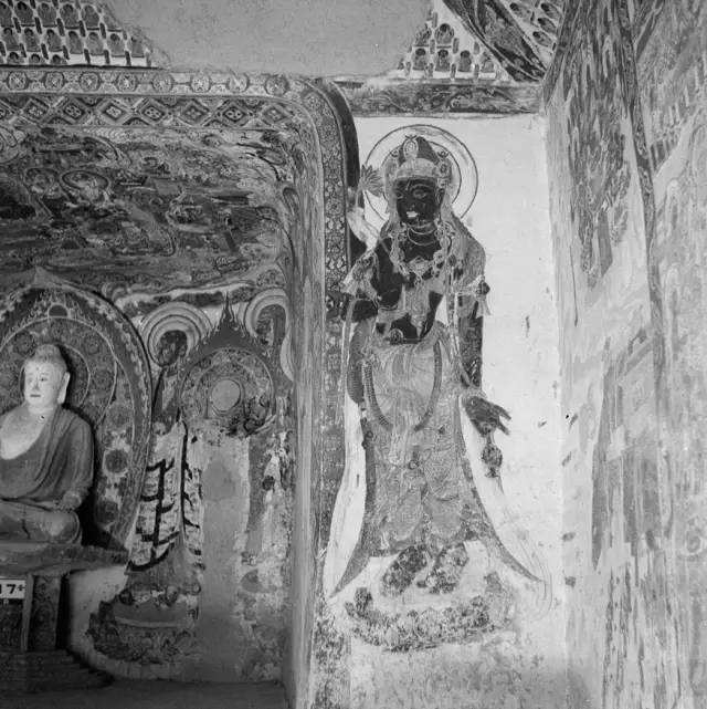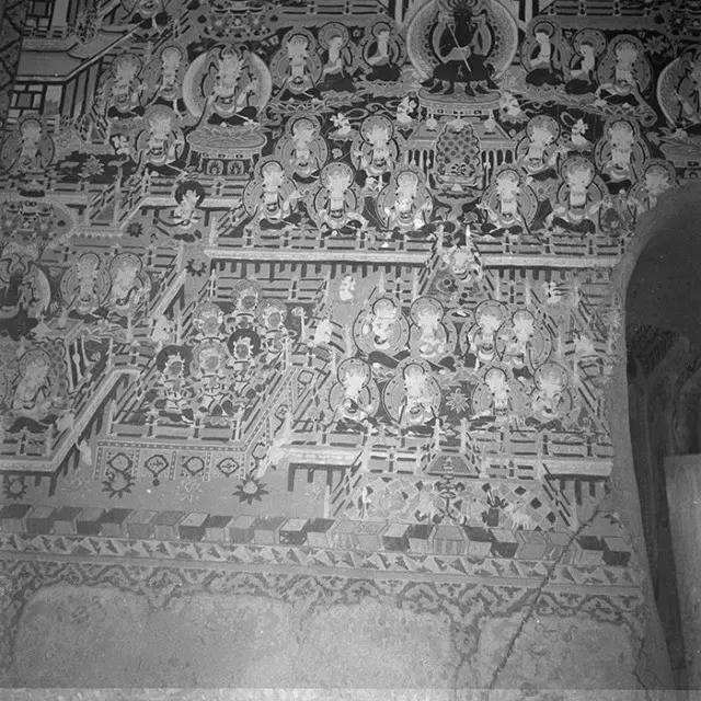 当她终于进入莫高窟,常常在一个洞窟、一面墙壁之前驻足数小时之久。她参观考察,拍摄下数百张黑白照片。
