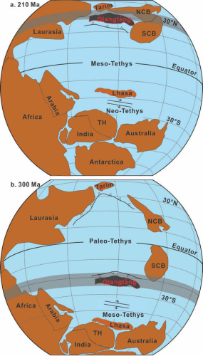 青藏高原各陆块的古生代-中生代构造演化不仅仅影响新生代之前海陆分布、洋流、气候和生态演化,而且影响新生代印度-欧亚碰撞之前的应力分布、区域气候模型和生物古地理的初始设定。然而,由于缺乏可靠的古地磁数据以及地质证据的多解性,关于北羌塘的来源及其漂移历史目前争议很大。