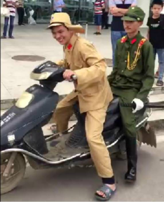◆继4名年轻人身穿二战时期的日军军服,在抗战纪念地“四行拍照引起公愤之后,8月13日16时许,在广西南宁市宾阳黎塘镇,又有两名青年男子身穿仿二战期间日本军装,在宾阳高铁站、黎塘镇街道、车站等公共场所“作秀”。 现场聚集了数百名群众,对两名男子的行为极为愤慨。