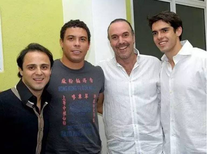 罗纳尔多面带笑容与卡卡合影时穿的衣服