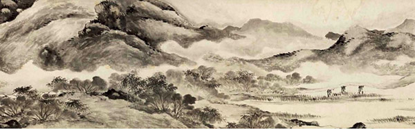 明 陈淳,罨画山图(局部),纸本墨笔,1544年,天津博物馆藏