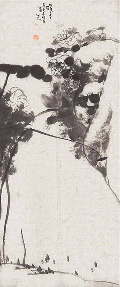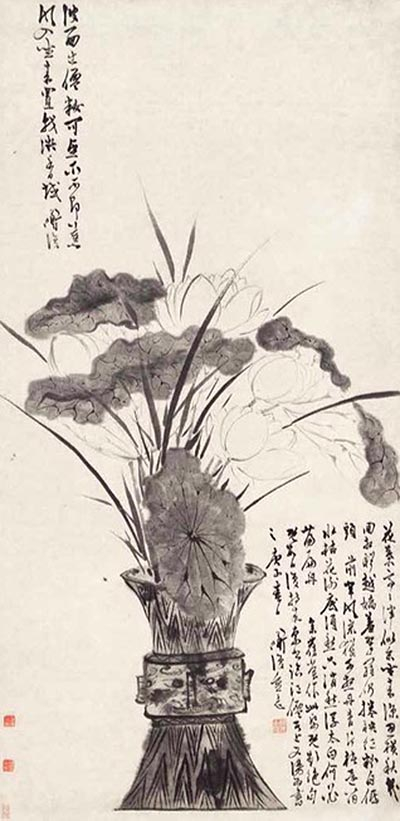 明 陈淳 商尊白莲图(轴),纸本墨笔,1540年,上海博物馆藏