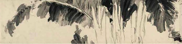 右起的牡丹、石榴、荷花和左起的梅、竹、水仙,向画幅两端伸展,促使画幅空间的伸延开拓,加强了画幅实际的广长感。