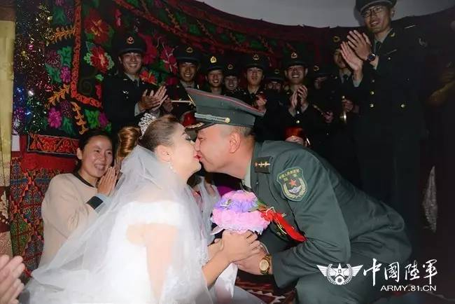 “七夕前,你要是还不能回来完婚,我就追到边关嫁给你!”为了兑现这个最后“通牒”,8月中旬,阿依夏乘火车、坐汽车,花了2天时间、辗转2000多公里赶到连队。了解到这一情况后,全连官兵和驻地牧民群众为他们精心策划了一场边关婚礼。