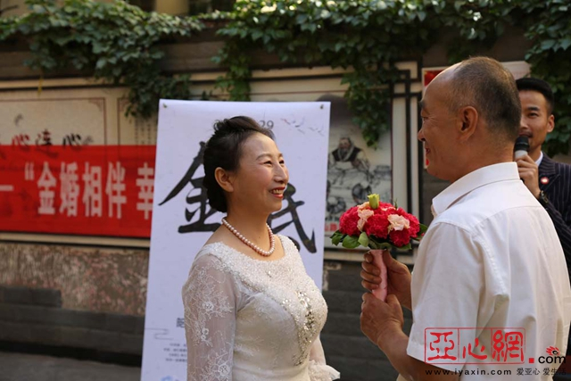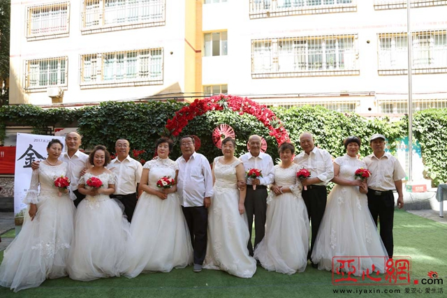 亚心网讯(文/记者闫小芳图/记者 翟俊杰)"我能想到最浪漫的事,就是和你一起慢慢变老……"8月29日,2017社区邻里节走进乌鲁木齐天山路社区,"金婚相伴 幸福家庭"集体婚礼活动现场,当熟悉的旋律响起,六对“新人”牵手缓步走来,满是皱纹的脸上笑容灿烂。