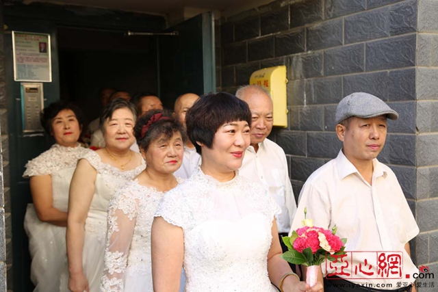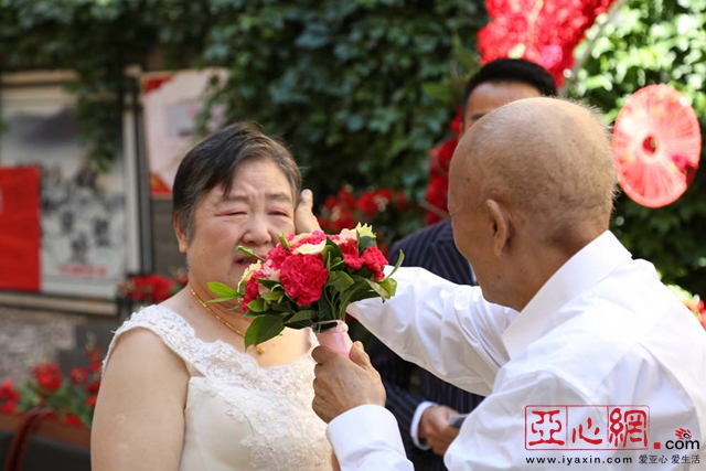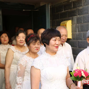 这些老人中,结婚时间最长的40年,短的也有27年,结婚时由于条件所限,一切从简,没有婚礼,没拍过婚纱照。"七夕"之际,天山路社区、北京银行、亚心网为辖区几对老人举办集体婚礼,帮老人们圆梦。