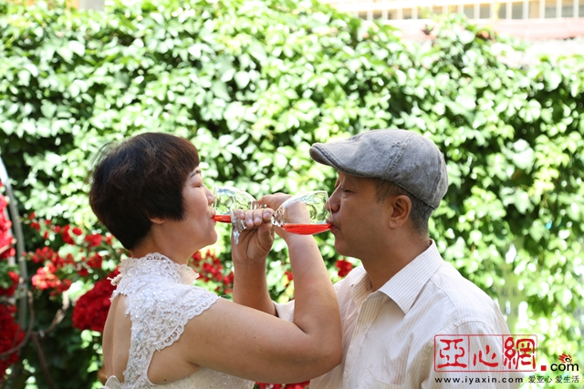 六对老年夫妇经过描眉画眼,穿上婚纱、礼服,一下子变年轻啦。