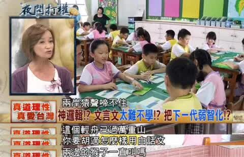 “台湾丢掉的,大陆现在要捡!”台湾东华大学华文文学系主任须文蔚指出,大陆从小学开始加强文言文教育,且陆生的阅读量非常大,台生跟陆生的语言能力差异很大。