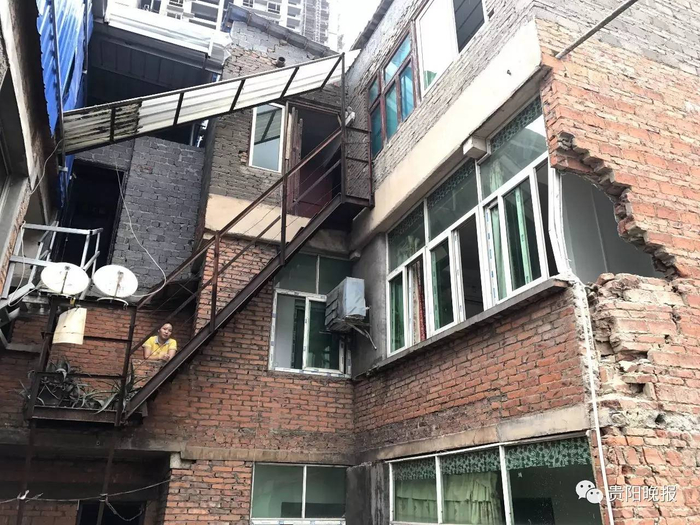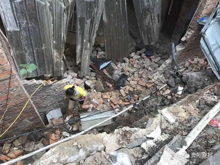现场清理垃圾的一位老人说,受损的房屋内,一半是出租房,一半用于开小旅社。“几十个人连夜被疏散了,现在都在宾馆里。”他说,好在没有人受伤。
