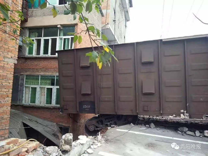 8月29日凌晨,遵义市中心城区一粮油仓库货运站台上,发生货运列车车厢出轨冲破挡墙和民居事故。幸运的是,这起骇人的事故,没有造成人员伤亡。