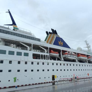 图为“中华泰山”号邮轮停靠码头等待上客。 陈燕 摄