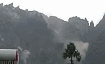 几百米外的山上腾起浓浓的烟尘,山顶的泥石如同瀑布一样,向下翻滚、滑落。