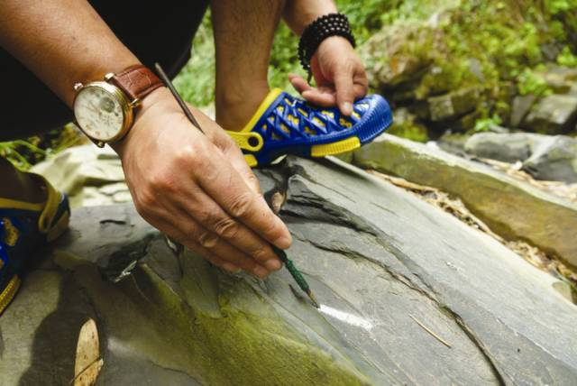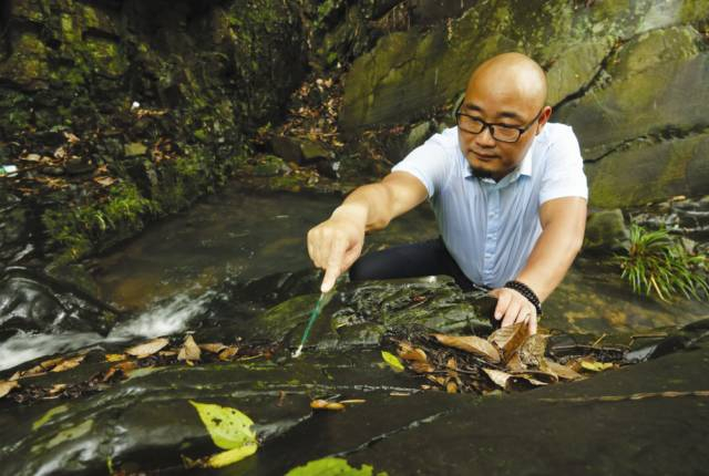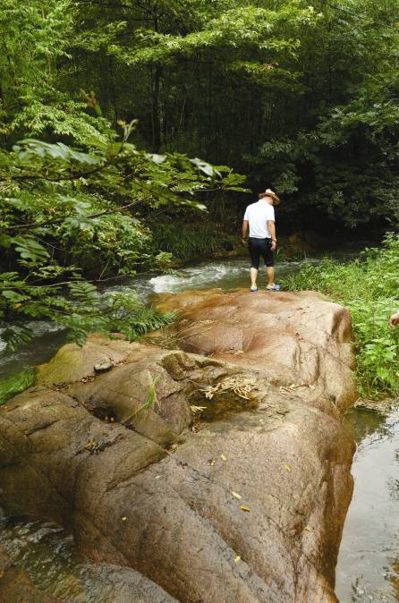 在寻找宣州砚石的过程中,蔚友云需要不断在山间寻找砚石的踪迹。