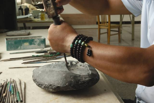 每一台砚的制成都少不了手工艺人的精细雕琢。