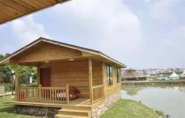 小而精致的木屋,蓝天白云下傍着水,给游客一种新鲜、别样的感受。