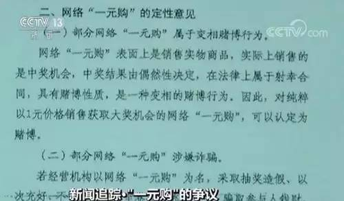 文件指出,网络“一元购”表面上是销售实物商品,实际上销售的是中奖机会,中奖结果由偶然性决定,在法律上属于射幸合同,具有赌博性质,是一种变相的赌博行为,因此,对纯粹以一元价格销售获取大奖机会的网络“一元购”,可以认定为赌博。此外,文件还指出,若经营机构以“一元购”为名,抽奖造假,以次充好、甚至卷款潜逃,其行为是典型的以非法占有为目的,使用欺骗方法骗取他人财物的诈骗行为。文件要求,各地对于利用网络一元购从事赌博或诈骗的违法违规行为,要依法予以打击处理。