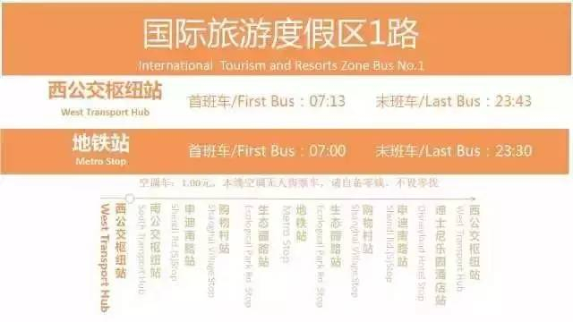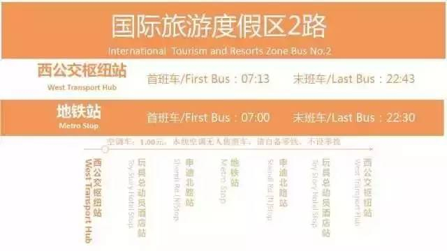 首末班车时间为:西公交枢纽站7:13—22:43分;迪士尼地铁站7:00—22:30分。