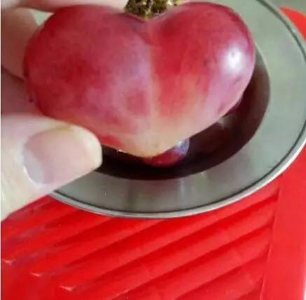 近日,汉阳的张女士买到一颗特别的“心形”葡萄。和市面常见的深红色普通葡萄不同,这颗葡萄颜色十分粉嫩,造型圆润,像极了红色爱心。专家表示,类似这种葡萄长成并蒂的情况,概率约为十万分之一。