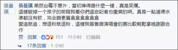 也有台湾网民表示:“爱追就追,想退粉就退粉。这样对待一个年轻人,台湾媒体真的没有素质”、“会因此而不支持他的明显都是跟风的粉丝。”