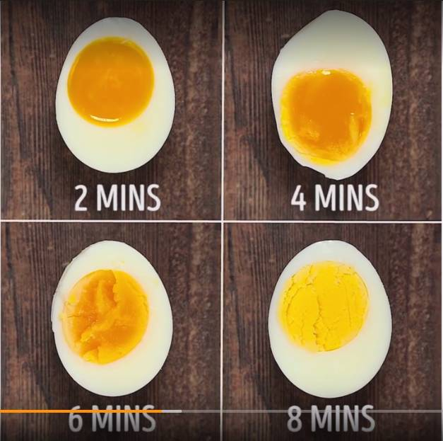 图片中是鸡蛋煮2分钟、4分钟、6分钟、8分钟时的状态,按照这个时间煮鸡蛋,想吃溏心蛋就不用担心控制不好时间了。