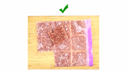 然后用刀沿压痕划开,剥掉塑料袋,平整的一片片猪肉脯初步完工,放进锅煎炸一下享用美味吧!