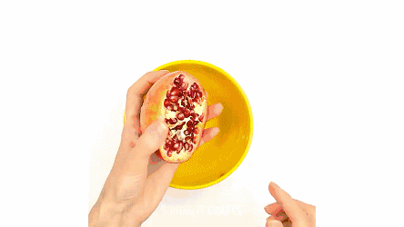 从正中间把石榴切成两半,把果肉对着碗口,用大勺子拍打石榴皮,把石榴粒都敲进碗里,吃的时候从碗里拿就好了。