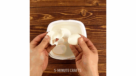 这个方法用来剥小小的鹌鹑蛋也很方便,特别省时间!没有保鲜盒,用两个碗替代也可以哒。