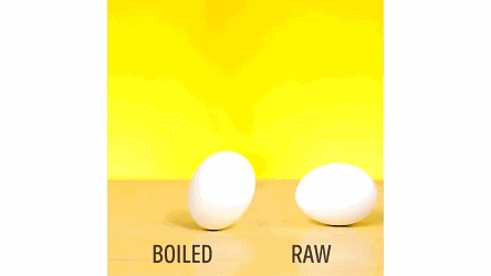 把鸡蛋立在桌上,用手捏住使它们转起来,放手后,能够立住不倒继续转圈的是熟鸡蛋,立马倒下的是生鸡蛋。