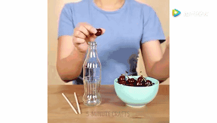 把樱桃倒放在瓶口,用筷子一插,樱桃核就掉出来了。