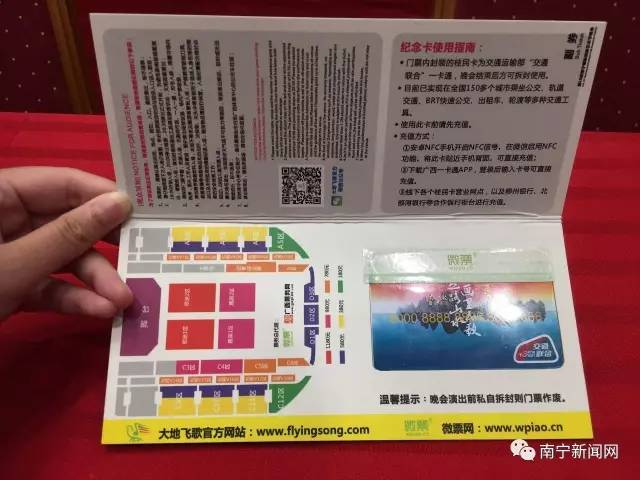 电子票卡为限量发行的自助交通桂民卡,该卡中所含的电子芯片不仅大大提升了门票的防伪功能,看完晚会后观众只要给桂民卡充值,就能够在全国150多个城市乘坐公共交通工具!