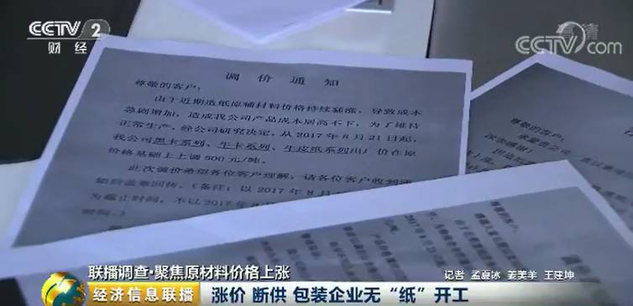 从今年年初开始,像这样断货的场景就时有发生,由于纸价上涨迅速,供货商由货到付款变为先付款再发货,这给于翠翠的公司带来巨大压力,进入8月供货商的调价函更是频繁的送来。