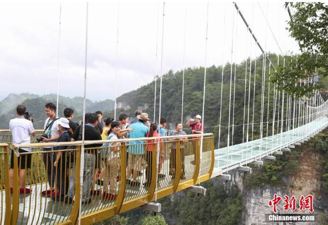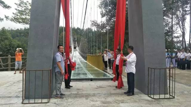 8月28日,贵州省第一玻璃天桥在世界自然遗产地施秉县云台山揭幕,施秉云台山玻璃天桥及配套旅游服务设施项目位于云台山景区坪山垴南北两侧山头,天桥将桥头立柱似一双张开的手臂托举苗族图腾元素牛角进行创意设计。