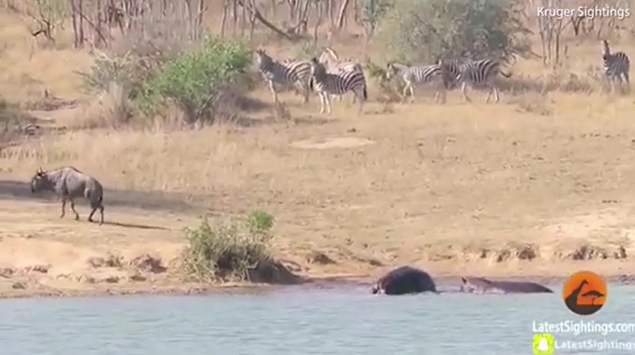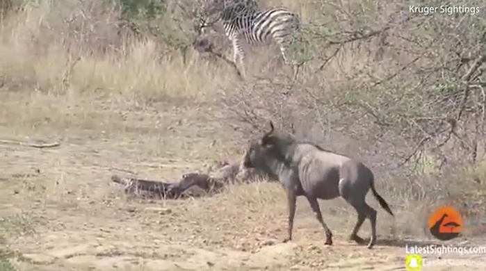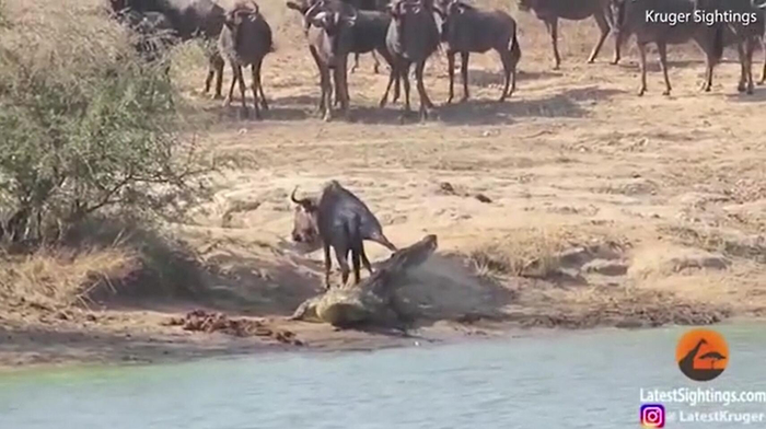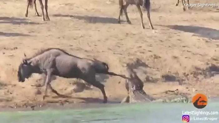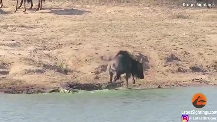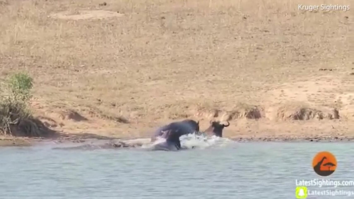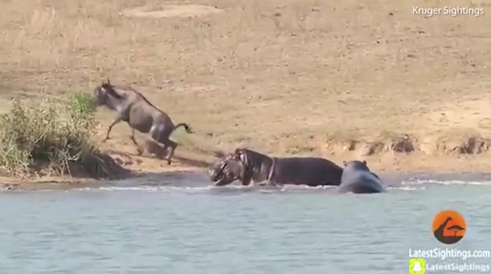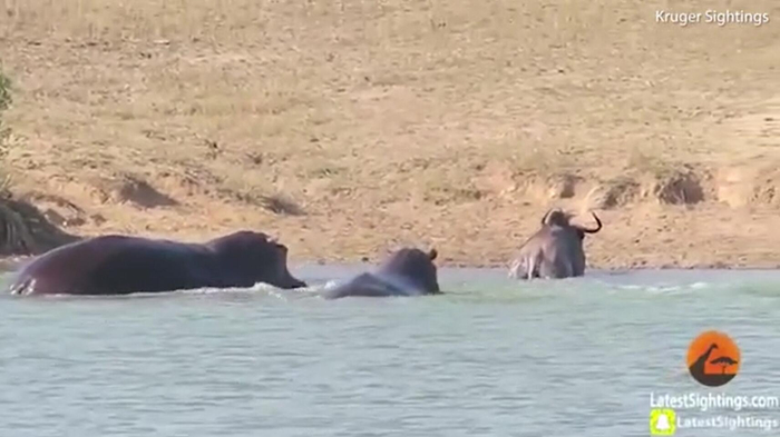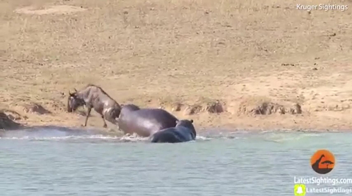 牛羚被鳄鱼拖进水里险丧命 没想到最后被河马救了