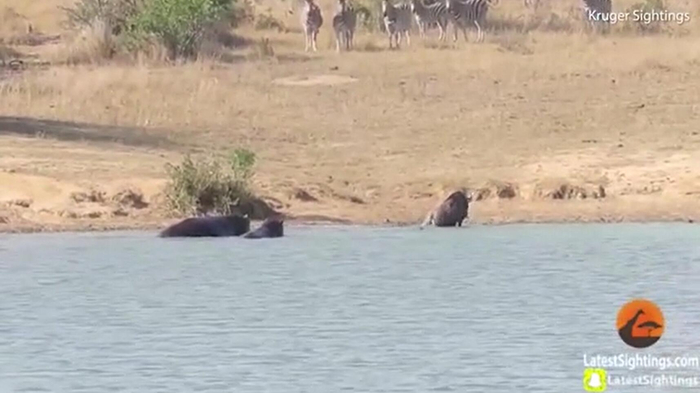 不过有分析认为,河马可能不是刻意去解救牛羚,而更可能是因为互相拉扯的牛羚和鳄鱼入侵了两只河马的领地,它们扑向鳄鱼的行为只在宣示领地权力。