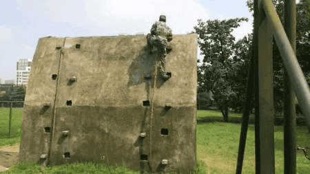 下面就让我们跟随小编走进部队院校,一起来认识一下渡海登岛400米障碍。