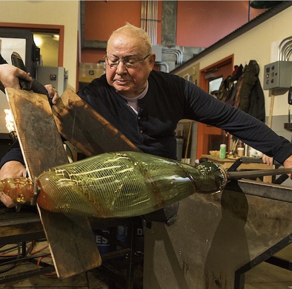 84岁的他有着72年的创作历程,作品获纽约大都会艺术博物馆、英国维多利亚与阿尔伯特博物馆、法国装饰艺术博物馆、美国康宁玻璃博物馆等35家博物馆的收藏。1979年,功成名就的利诺甘愿背负“民族叛徒”的骂名,孤身前往美国西雅图皮尔查克玻璃学校教授从来不公开的威尼斯玻璃技法,为的是在工艺面临生死存亡之际,找到新的扎根可能,推动了美国工作室玻璃运动的盛世。