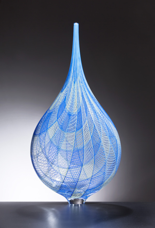 他通过持续的艺术反思和技法创新,开发出一系列个性鲜明的作品风格。“恐龙”系列,大幅度地使用牵引方式,于吹制玻璃中拉曳出修长、水流形的瓶口,颠覆传统玻璃平稳的造型;窄小的底座挑战整件作品的重心,不可思议的危险外形,一不小心,就会粉身碎骨。“天使之泪”系列作品则是利诺突破自我的作品:长条的水滴形状,底部窄,肩宽,颈部十分细长,如同眼泪的造型,成为他作品的一大特色。