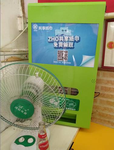 昨日,记者在天河石牌村一家快餐店见到了共享纸巾自助机:不足1米高的绿色箱体,摆放在餐桌角落处。记者在店内等待近20分钟,发现期间没有人扫码领取纸巾。