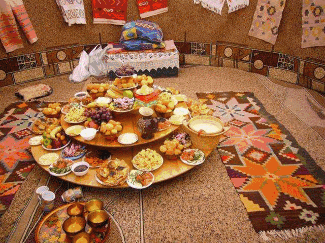哈萨克人的传统食品是羊肉、羊奶及其制品,手抓羊肉是最流行的菜肴。哈萨克语把手抓羊肉叫“别什巴尔马克”,意思是“五指”,即用手来抓着吃。
