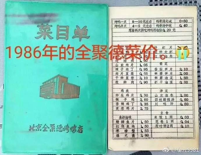 30年前全聚德老菜单被翻出,一只烤鸭只卖8块,网友:服务员小姐姐,来炒一本!