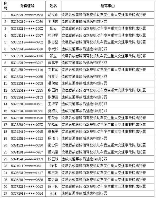 云南省共有47人被终生禁驾!