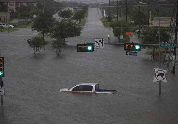 美国休斯敦27日彻夜豪雨