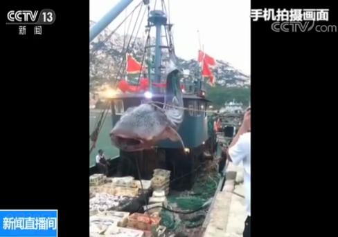 涉事渔船船主 宋兆江:在小公岛东北海域水面上看见一条死鱼,然后我(驾船)跑到跟前确定(是不是)死鱼,看这条鱼很像是保护动物,所以(决定)起吊,船上有起重机把它弄到船上,想运送到码头,找有关部门把它处理了。