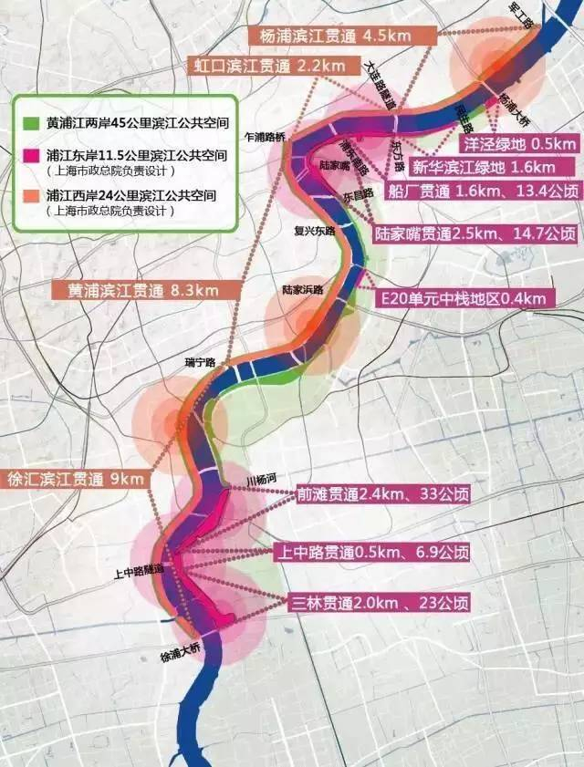 该项目将于2017年9月底完成新建漫步道、跑步道、骑行道三线贯通。项目将通过变封闭厂区为公共空间、合理保留和利用老建筑、设计和建设新地标等创新手段,不仅还江于民,还希望打造浦江东岸魅力新空间。