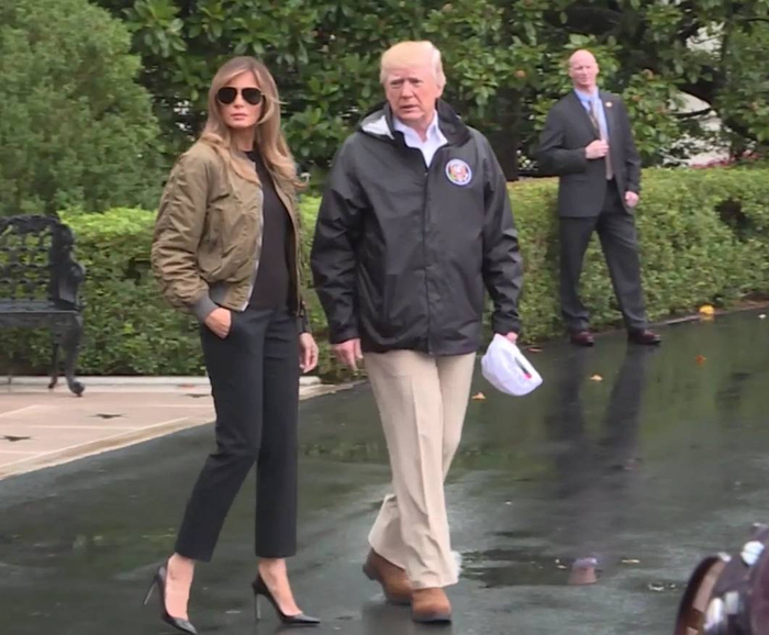 不过,当“空军一号”专机在得州降落时,梅拉尼娅走下舷梯时已经改变了着装,脱掉了夹克,换了一件白衬衫,脚上的高跟鞋变为白色平底运动鞋。