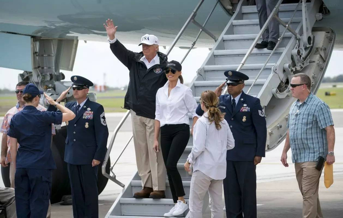 美国总统特朗普及妻子梅拉尼娅29日前往得州视察灾情。