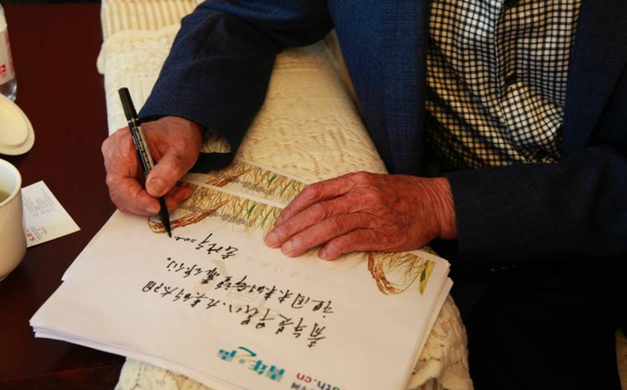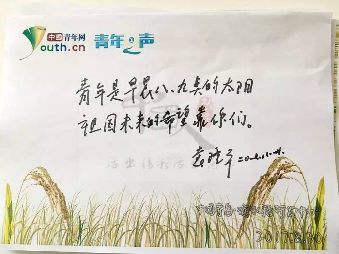 当小青把这些祝福拿给袁老看时,他表示非常的感动和开心。立马要拿起笔,想写给青年们几句话。