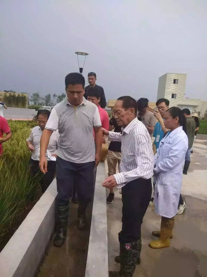 早在生日的前两天,8月28日,袁老就来到了青岛海水稻研究发展中心白泥地实验基地,与自己一生热爱并甘愿奉献终生的水稻们叙旧。难以想象,年近九旬的他依然穿起胶鞋,和“海水稻”研发团队一起下田做科研。